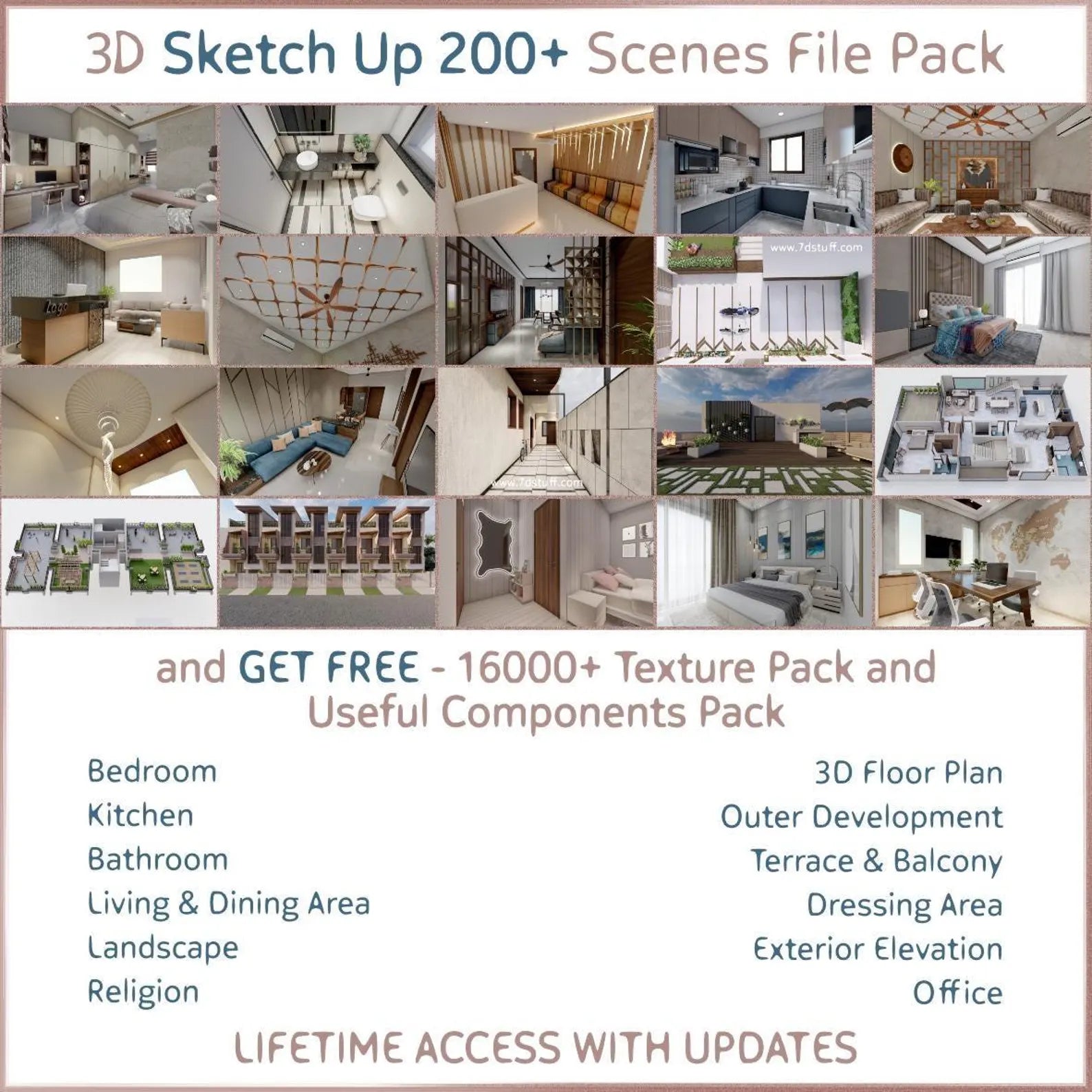 200+ Ready-To-Use SketchUp File and 500+ Rendering Images Includes.
