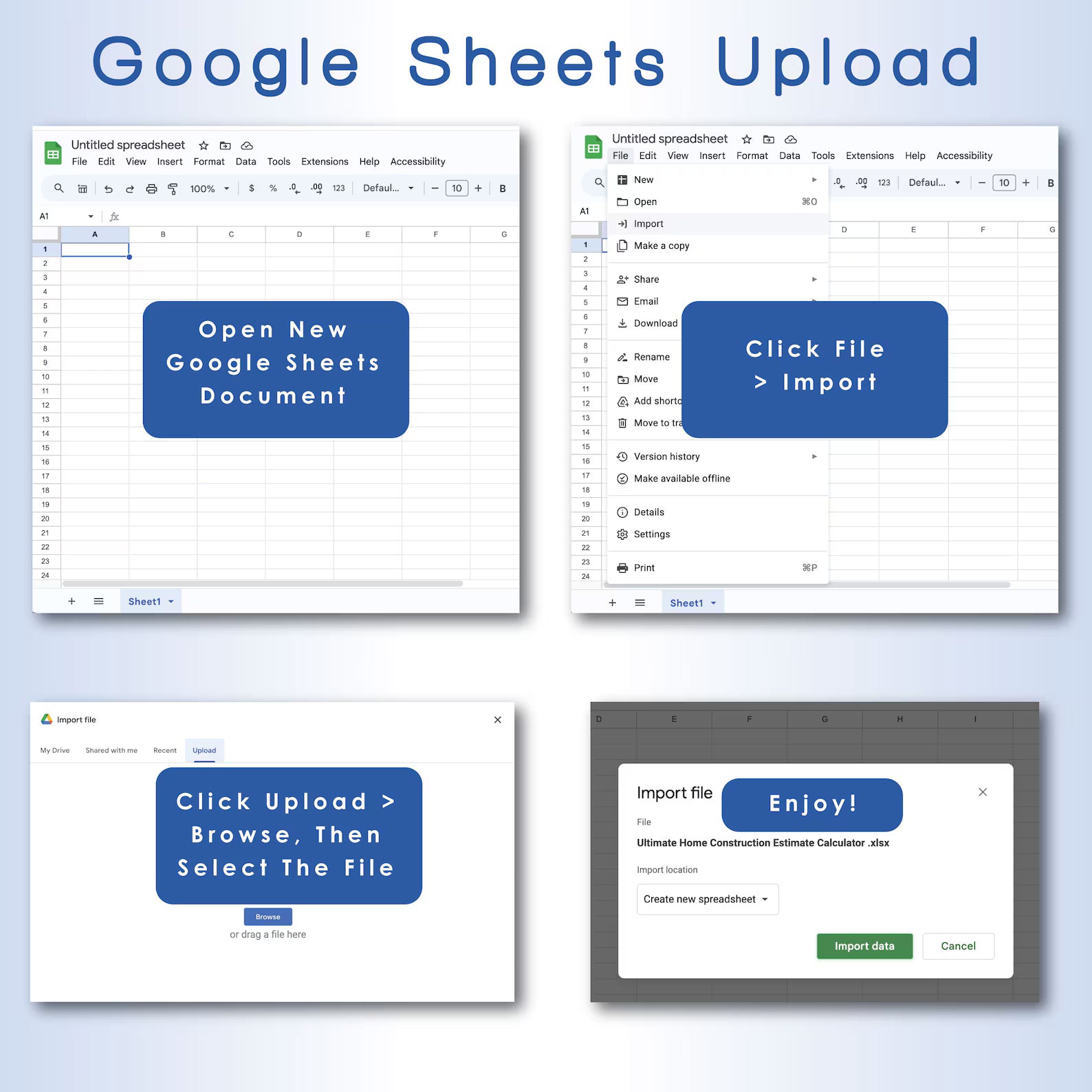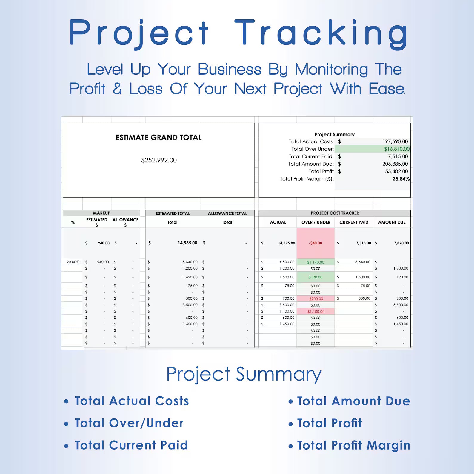 Digital calculator, automatic printable estimate, and compatible with Google Sheets and Excel